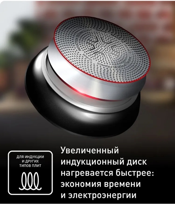 Технология Thermo-Fusion™+ сочетает экстраширокую индукционную сетку и толстое дно, гарантируя быстрый нагрев и равномерное распределение тепла по всей посуде для правильного приготовления каждого блюда.