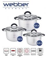Набор посуды Webber BE-628/6 2,2л, 3,0л, 5,2л, нерж.сталь, для всех типов плит