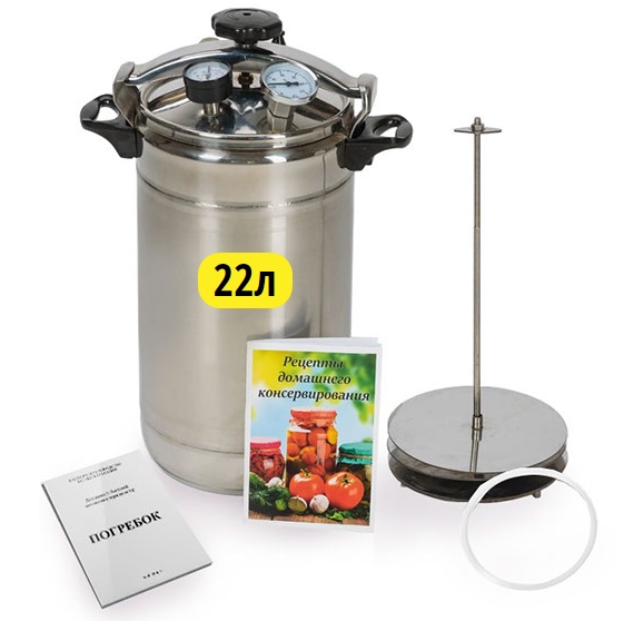 Внутренний объем автоклава составляет 22 литра. Размеры автоклава оптимально подобраны для максимально эффективной загрузки. Вы сами сможете задать необходимую высоту кассеты для банок, что позволяет использовать банки различного объема — от 200 гаммовых до классических 3-литровых.