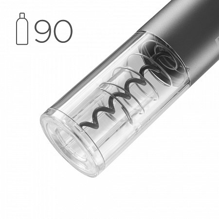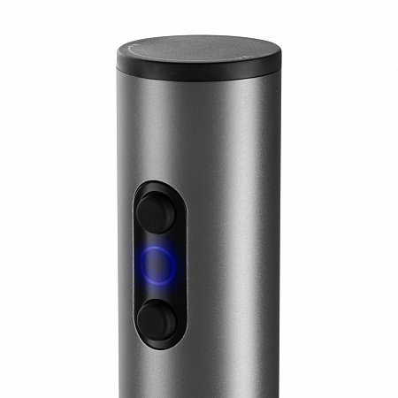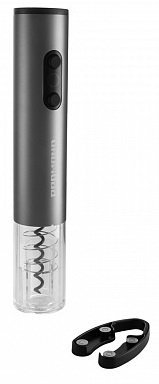 Открытие бутылки происходит одним нажатием на кнопку. Компактный размер (25,2 мм х 49 мм) и эргономичная форма дают возможность легко открывать бутылку одной рукой. Модель выполнена из металла, а нижняя часть корпуса — из прозрачного пластика, сквозь который видно движение штопора. Также в конструкции прибора предусмотрена подсветка, которая служит для индикации работы прибора.