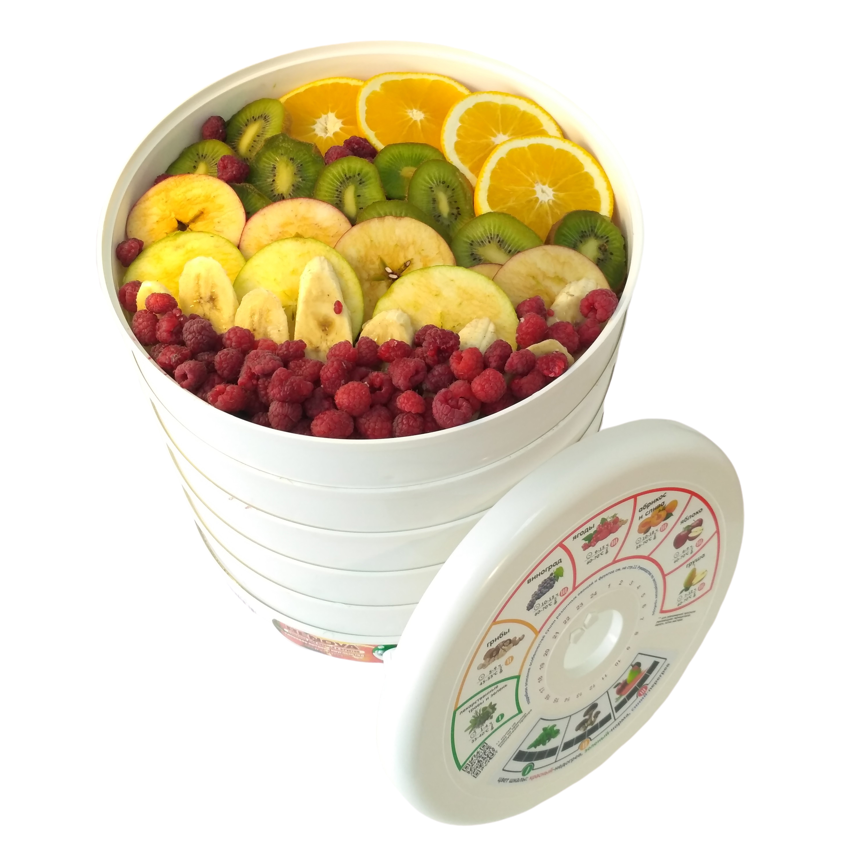Комплектация     Сушилка для овощей и фруктов с поддонами, сумка-мешок для хранения, 1 поддон для пастилы, упаковка, руководство по эксплуатации