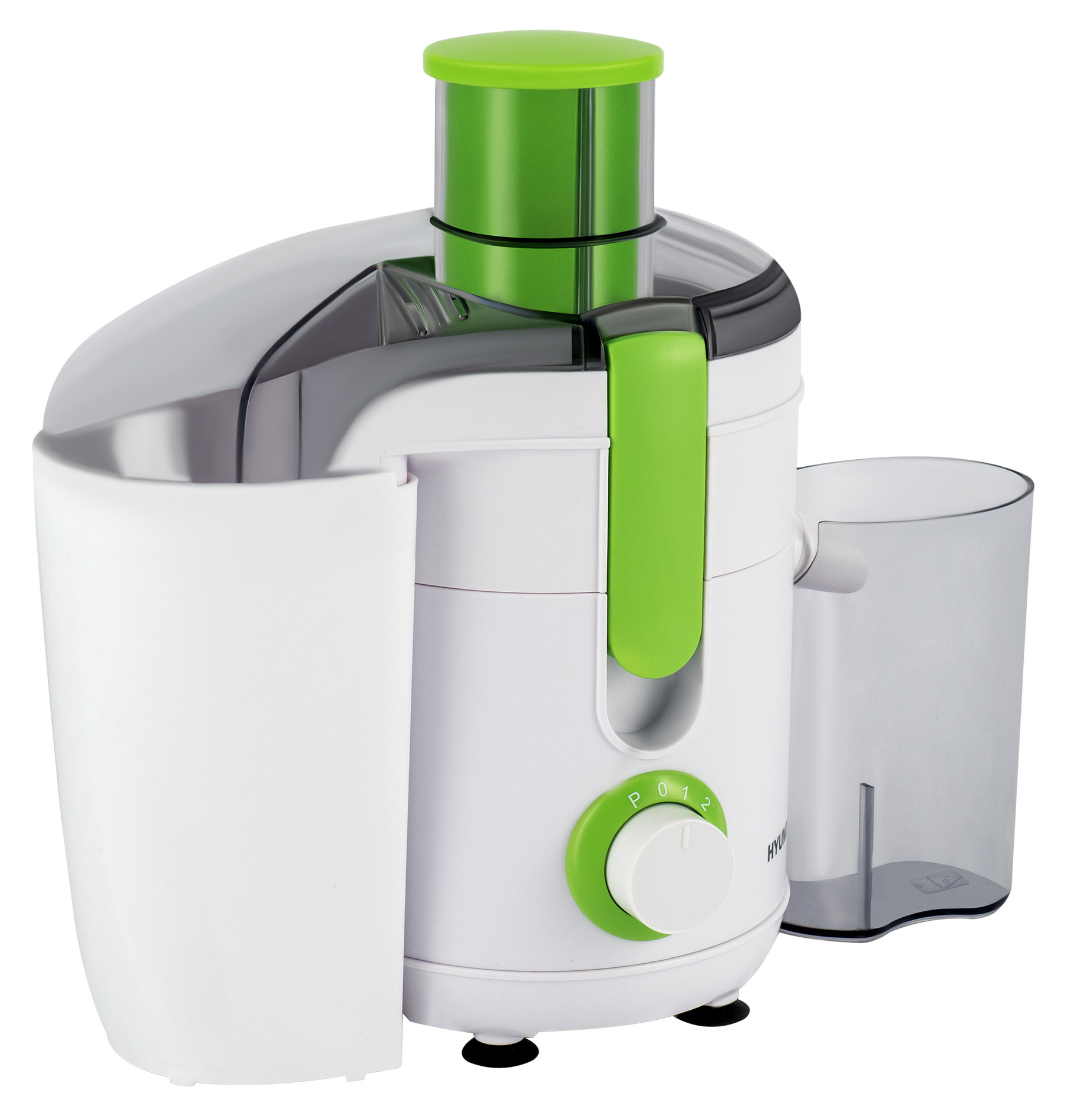 Резервуар для сока данной модели составляет 400 мл, а ёмкость для мякоти имеет объём 1 литр. Hyundai HYJE1615 оснащён удобной круглой горловиной и системой «капля-стоп»: носик поднимается вверх, чтобы капли не попадали на стол.