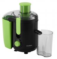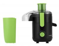 Мощность прибора составляет 500 Вт, а доступных скоростей в нём две – этого достаточно, чтобы получить сок из большинства овощей и фруктов. Устройство использует центробежную силу, чтобы отделять мякоть, для неё есть отдельный резервуар на 1000 мл. Разовый объём сока, на который рассчитана соковыжималка, 400 мл – это стандартный стакан.