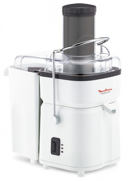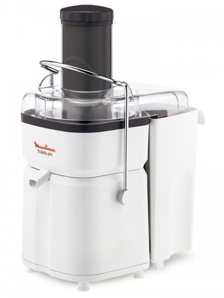 Соковыжималка MOULINEX JU450139 – компактное центробежное устройство в стильном корпусе из прочного пластика с удобным металлическим зажимом, позволяющим быстро разбирать и мыть его. Мощности аппарата в 700 Вт, трех скоростей и объема резервуара для сока в 1250 мл хватит для удовлетворения потребностей средней семьи из трех-четырех человек. Благодаря прорезиненным ножкам можно не опасаться за устойчивость модели. В круглую горловину соковыжималки MOULINEX JU450139 допустимо загрузить даже среднее яблоко целиком. Получаемый свежий сок подается напрямую, а мякоть выбрасывается автоматически точно так же, как и пена. Надежным и долговечным прибор делает сеточка из нержавеющего металла.