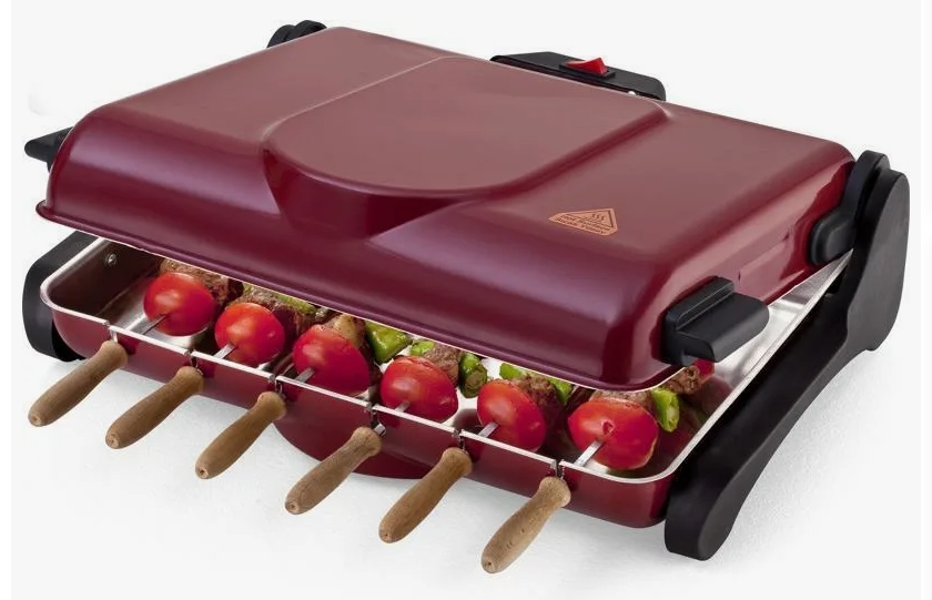 Электрошашлычница - гриль - барбекю Akel АВ -670 - совмещает в себе сразу 3 электроприбора: гриль, шашлычницу и барбекю. 6 шампуров с рабочей длиной 27 см каждый позволяют приготовить за раз порцию шашлыка на целую компанию. Решетка для гриля и барбекю так же очень вместительны. Небольшие габариты электроприбора позволят брать его с собой на любой отдых, а турецкое качество позволит прослужить ему очень долго. Производителем указан срок службы не менее 5 лет. Но на этом преимущества этого многофункционального прибора не заканчиваются. Производитель так же позаботился о том, чтобы его было легко мыть. Перед приготовлением на дно прибора наливается небольшое кол-во воды для предотвращения прилипания жира, выделяемого во время приготовления. В дальнейшем Вы просто выливаете эту воду, протерев корпус без особых усилий любым средством растворяющим жир. Практически весь электроприбор разделяется, что дополнительно упрощает его очистку.