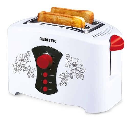 CENTEK CT-1426 - тостер для одновременного обжаривания двух ломтиков хлеба. Оснащен регулятором степени обжаривания (7 степеней), клавишей отмены и функцией размораживания.