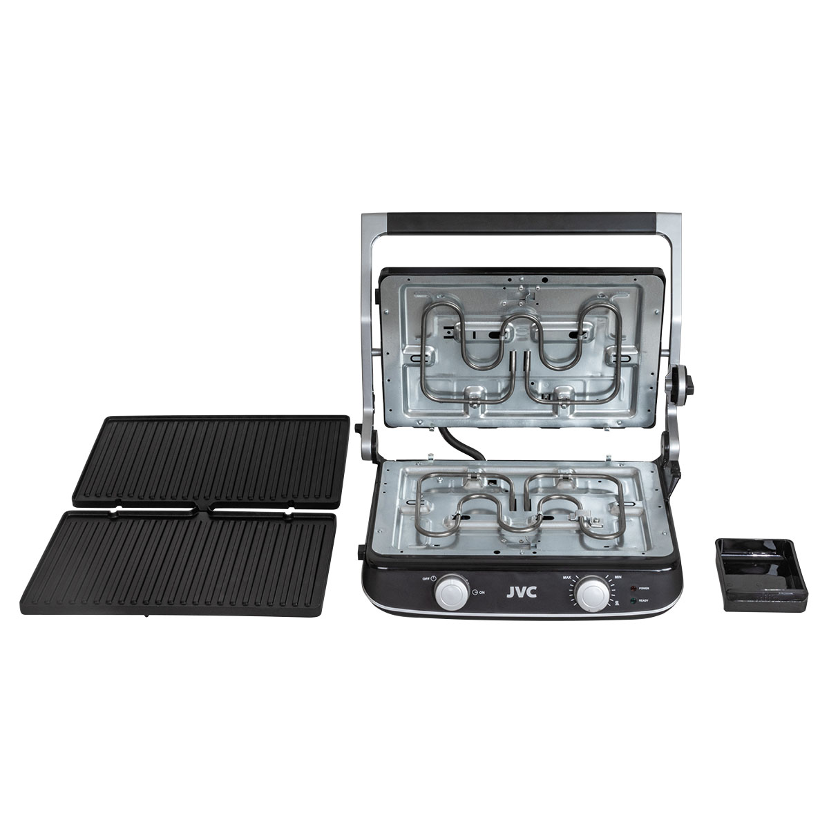 электрогриль, съемные нагревательные панели, съемный поддон для сбора жира, гарантийный талон, инструкция на русском языке