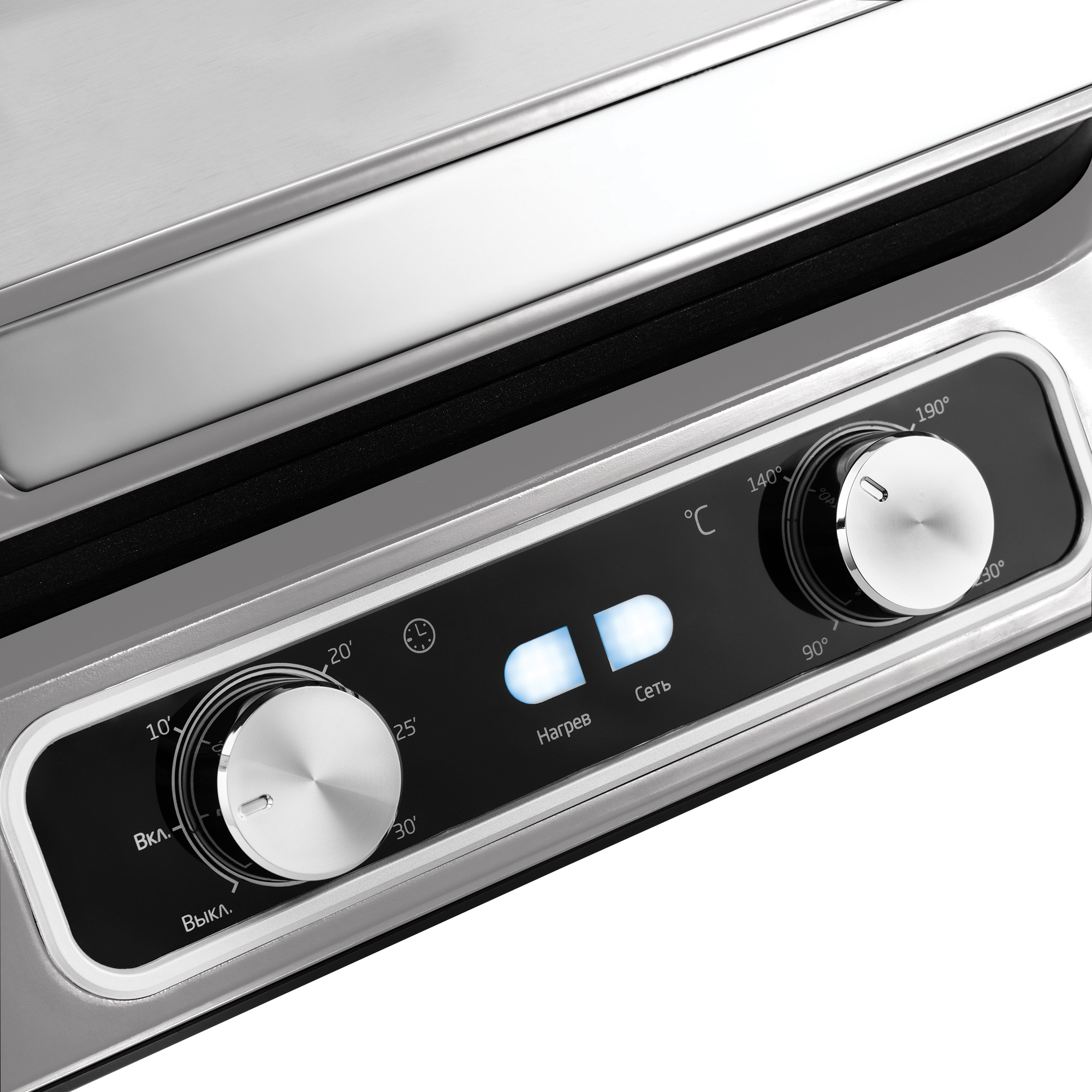 Время приготовления и температуру нагрева вы выбираете сами. Используйте регуляторы плавного изменения температуры в диапазоне от 90 до 230 градусов, чтобы придать стейку нужный цвет корочки, текстуру и степень прожарки.