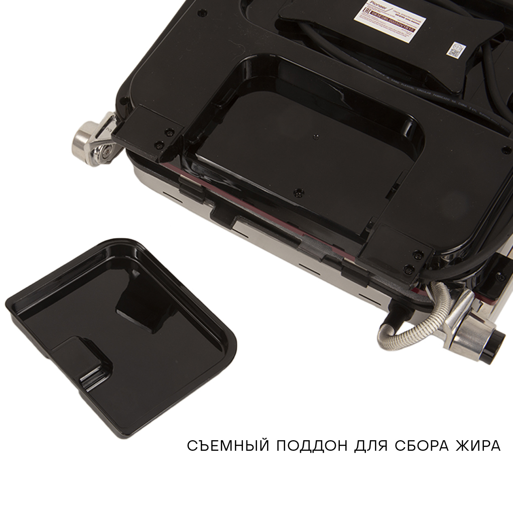 Нагревательные поверхности оснащены не только надежным антипригарным покрытием, но и характерным “рифленым” рельефом, оставляющим на мясе характерные “бороздки”.