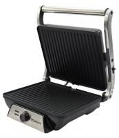 Гриль-пресс, мощность 2000 Вт, регулируемый термостат (максимальная температура 240°С), 2 рифленые панели для жарки, размер панели 29.7х23.6 см, антипригарное покрытие, открытие панелей на 180° (возможность приготовления на 2 пластинах одновременно), индикатор работы, прорезиненные ножки.