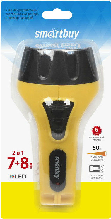 Фонарь Smartbuy аккумуляторный светодиодный SBF-88-Y с прямой зарядкой / 7+8 LED / желтый