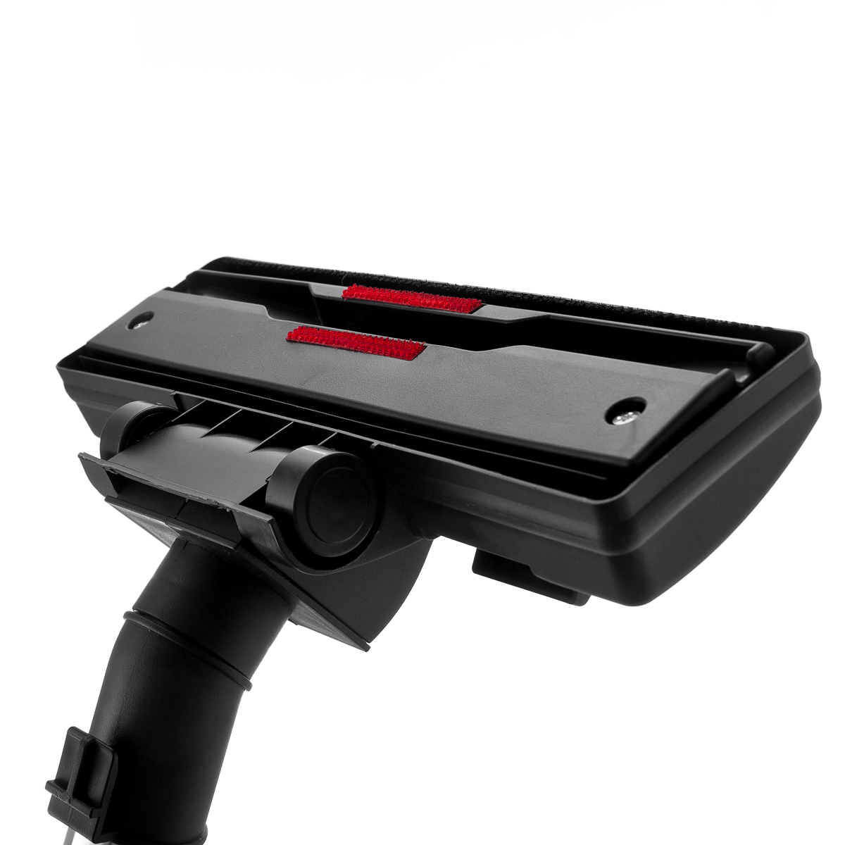 В комплект входят щетка для чистки мебели, щелевая насадка, а также универсальная щётка с переключателем пол/ковёр.