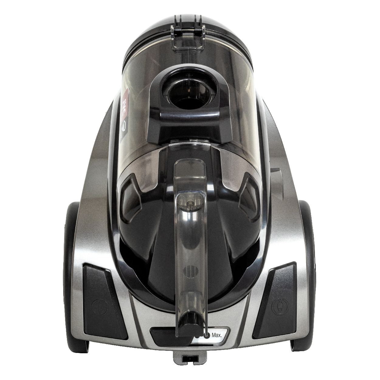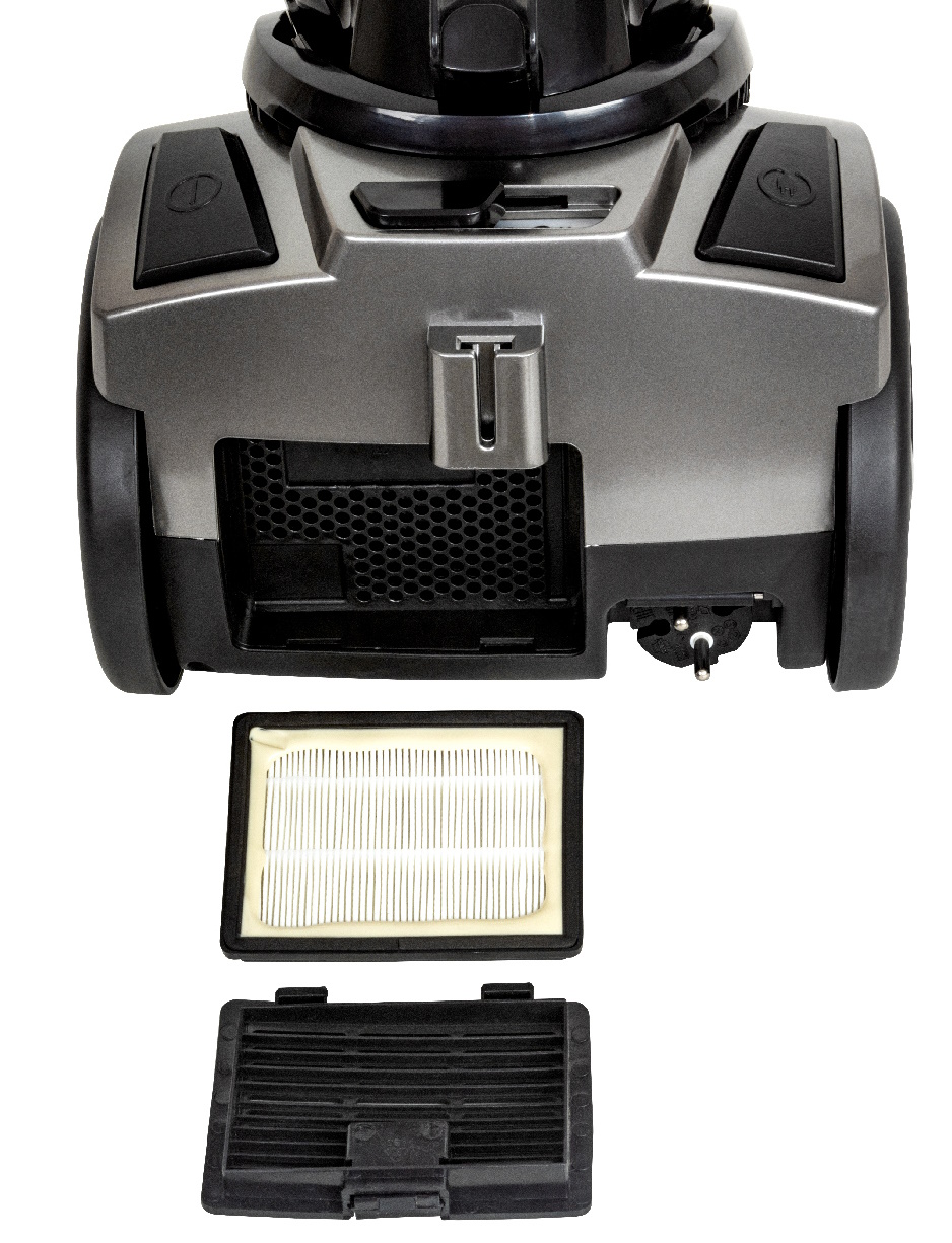 Пылесос циклонного типа с контейнером для сбора пыли емкостью 2 литра, регулятором силы всасывания га корпусе, автонамоткой кабеля и телескопической металлической трубкой. Также оснащен большими колесами для большей маневренности и моющимся НЕРА-фильтром.
