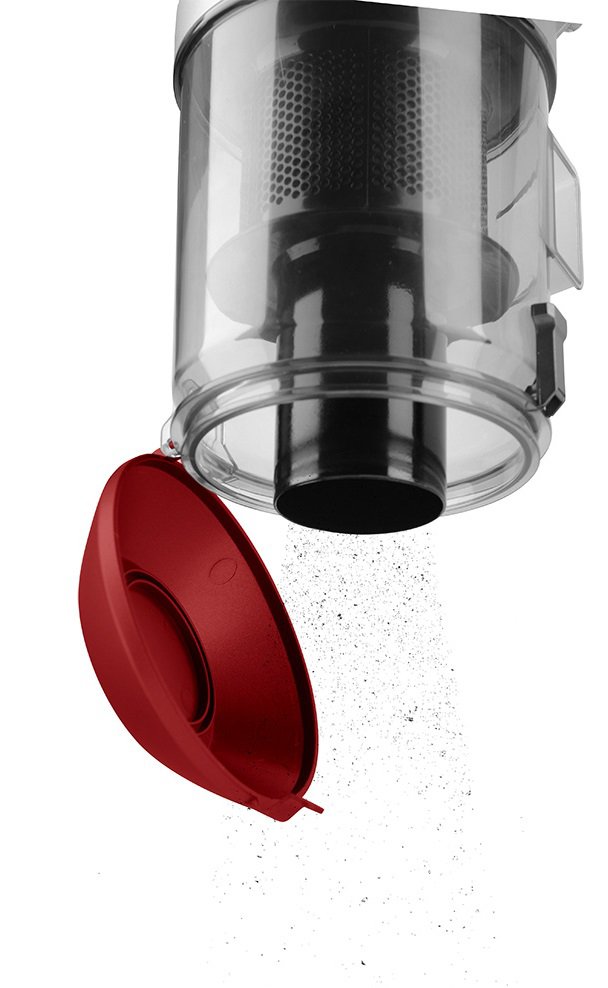 Пылесос циклонного типа с двойной системой фильтрации, автонамоткой шнура, металлической телескопической трубкой и универсальной насадкой для ковара и пола.