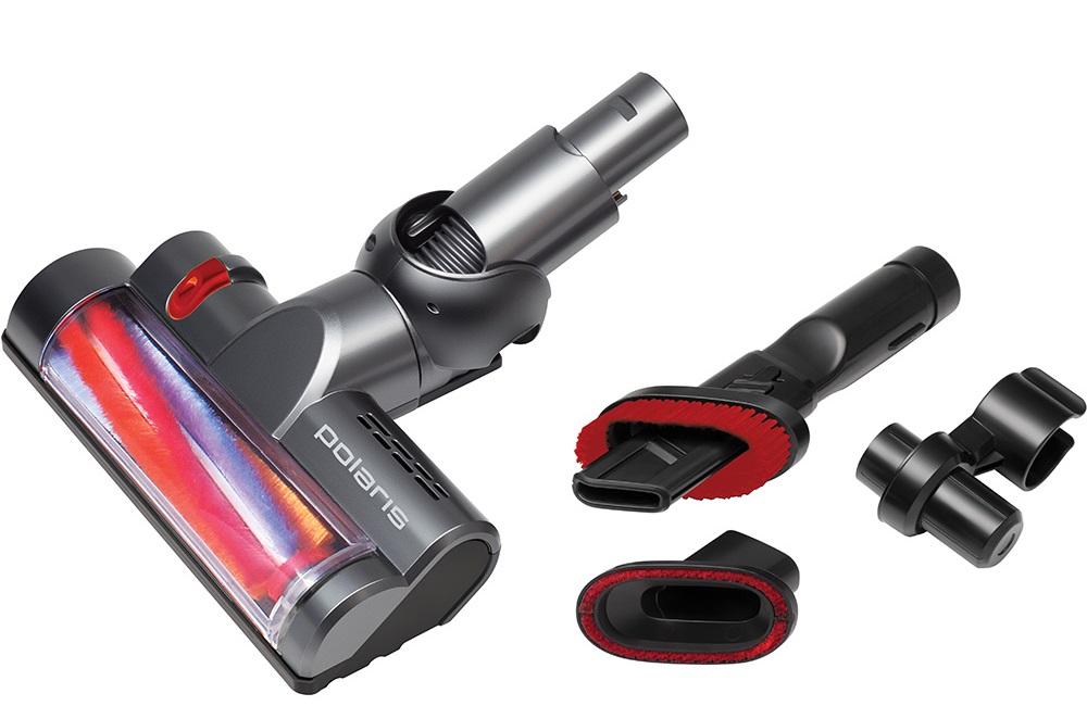 Пылесос-стик Polaris PVCS 0922HR оснащен щеткой, щетинки которой расположены в S-образном порядке на вращающемся цилиндре. Она легко справляется с чисткой ковров и твердых напольных покрытий. Среди других преимуществ данного аксессуара возможность вращения на 180 градусов, а также встроенная подсветка, улучшающая видимость в местах с недостаточным освещением.