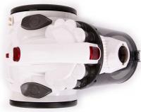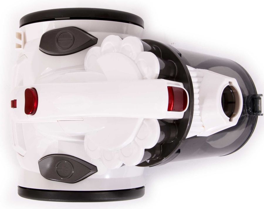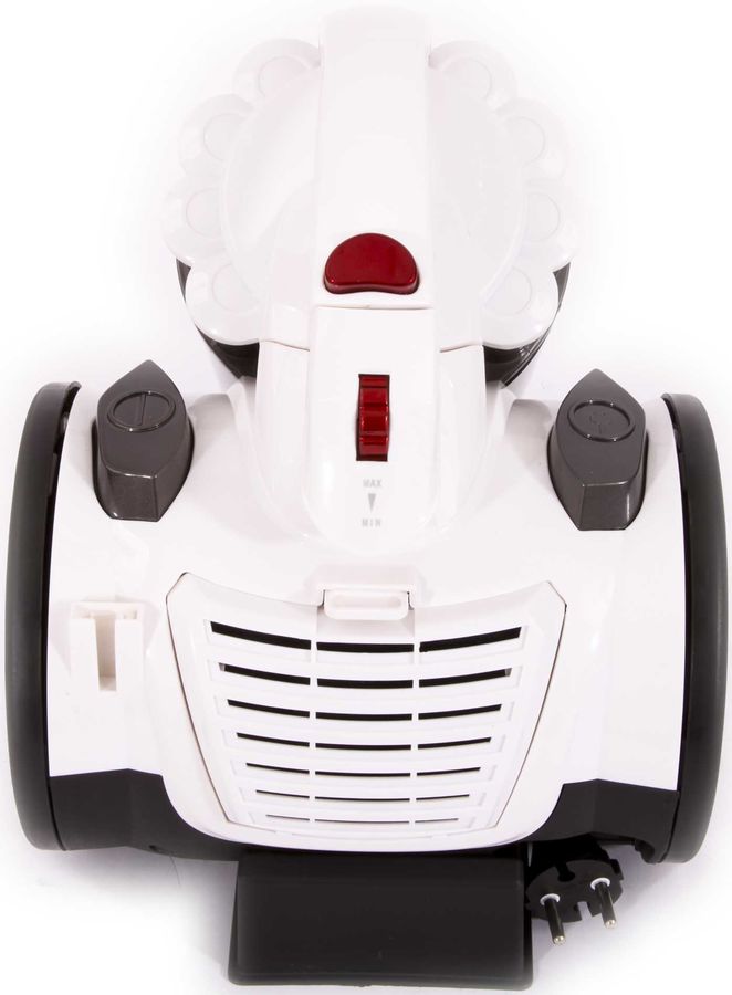 Невероятно красивый пылесос SUPRA VCS-1835 устойчиво стоит на полу. Перемещать его можно с помощью больших колес. Также, если требуется, его легко перенести. Длина сетевого шнура составляет 4,2 м. После уборки помещения он, при нажатии специальной кнопки черного цвета, расположенной над колесом, втягивается внутрь пылесоса. Предусмотренная световая индикация сообщит о текущем состоянии устройства.