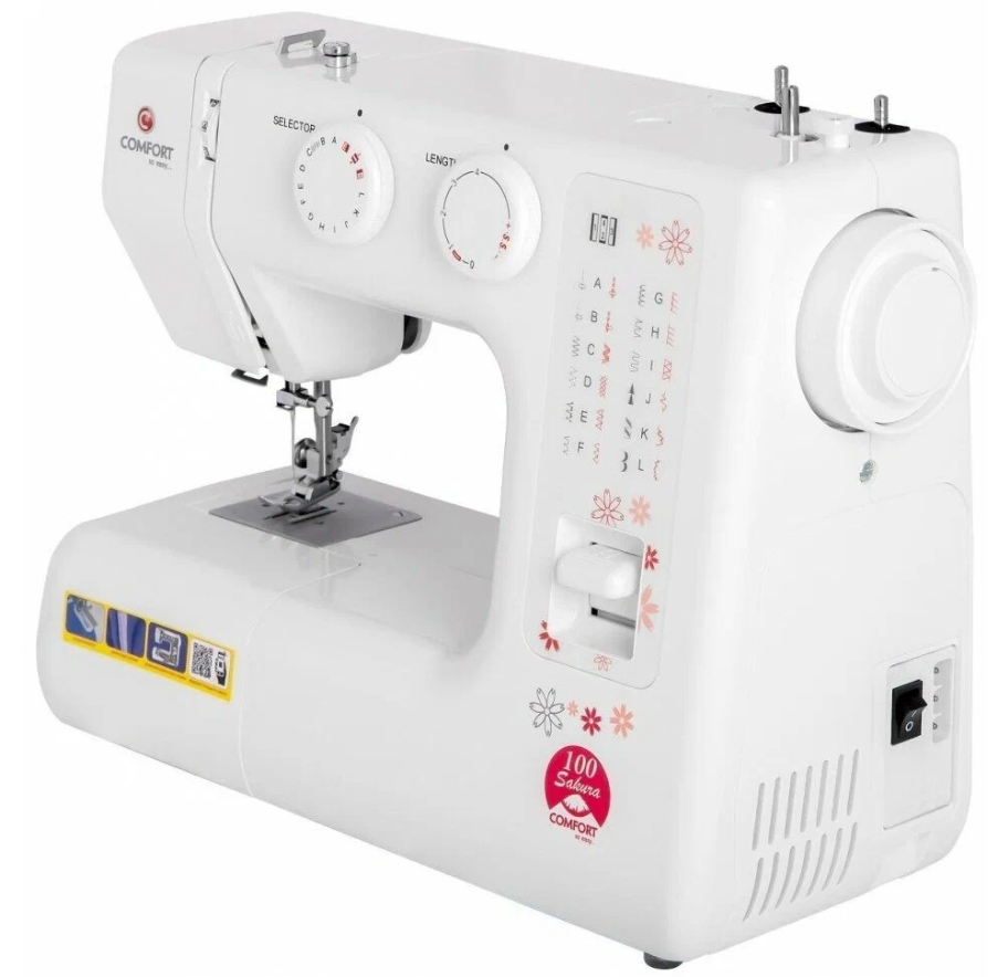 швейная машина; реостатная педаль для регулировки скорости шитья; мягкий чехол; универсальная лапка (железная, предустановлена); лапка для выметывания петли; лапка для пришивания молнии; шпули –3 шт. (и одна предустановлена); иглы-3шт.(и одна предустановлена); отвертка большая; отвертка малая; распарыватель/кисточка; масленка; приспособление - направитель шва