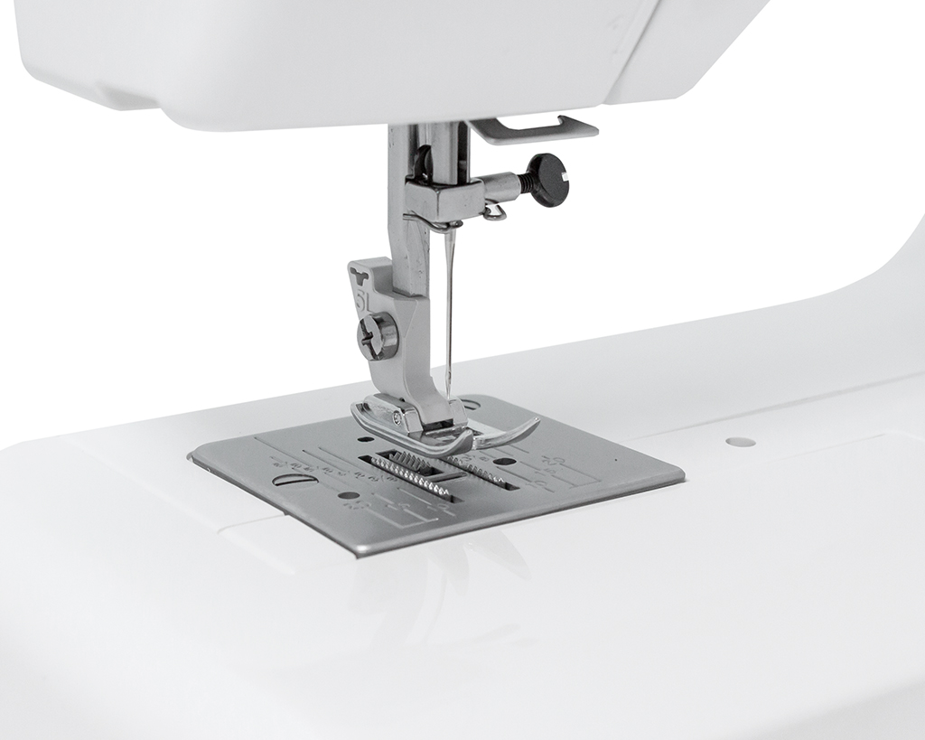 В этой модели вы сможете отрегулировать не только длину стежка до 4 мм, но и ширину строчки до 5 мм. Выполните настройку в зависимости от используемых материалов.