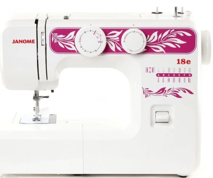 Обладающая привлекательной стоимостью швейная машина Janome 18E способна справляться сразу с 18 операциями и может обеспечивать выполнение работ на скорости до 400 стежков/мин. Оригинальная модель отличается стильным дизайном, имеет регуляторы параметров строчек на фронтальной поверхности корпуса. Доступно создание петель, в полуавтоматическом режиме, формирование оверлочных швов, прямых, потайных и смещенных.