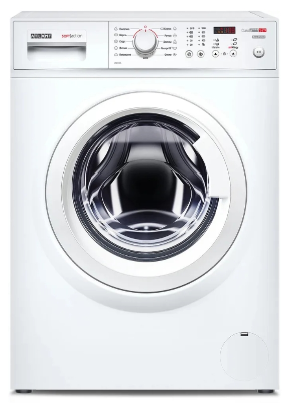Стиральная машина ATLANT 70С105-00 при стандартных и довольно компактных габаритах 59.6x84.6x48.2 см способна удовлетворить запросы даже большой семьи. За одну стирку можно очистить до 7 кг белья в 11 вариантах программ. При этом есть возможность откорректировать длительность и интенсивность процесса в зависимости от степени загрязнения тканей как в меньшую, так и в большую сторону. Устройство довольно экономично и экологично в использовании. Один процесс требует 52.5 л воды, а класс энергопотребления соответствует международной стандартизации по A+++. Стиральная машина отдает практически сухое белье, благодаря отжиму с оборотами до 1000 в минуту (скорость регулируется в зависимости от программы), что соответствует классу С.ATLANT 70С105-00 отвечает умеренному уровню шума. Для удобства использования предусмотрена возможность отсрочка запуска стирки, а за безопасность отвечает блокировка от детей и животных.