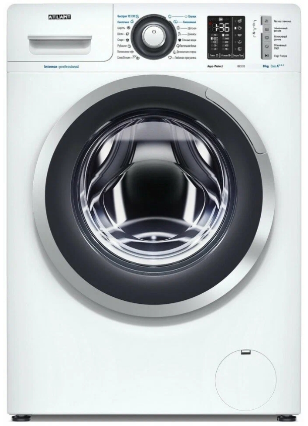 Новая стиральная машина ATLANT серии INTENSE PROFESSIONAL имеет уникальный дизайн, который прекрасно дополнит любой интерьер своим внешним видом. С помощью новых сенсорных технологий достаточно легкого касания для выбора функций и программ. Светодиодные индикаторы и сегментный дисплей машины размещены на панели управления под небольшим углом, что облегчает визуальное восприятие отображаемой информации о работе машины. Благодаря интеллектуальным программам она не только интуитивно понятна в управлении, но и обеспечивает превосходные результаты стирки при низком потреблении воды и электроэнергии.