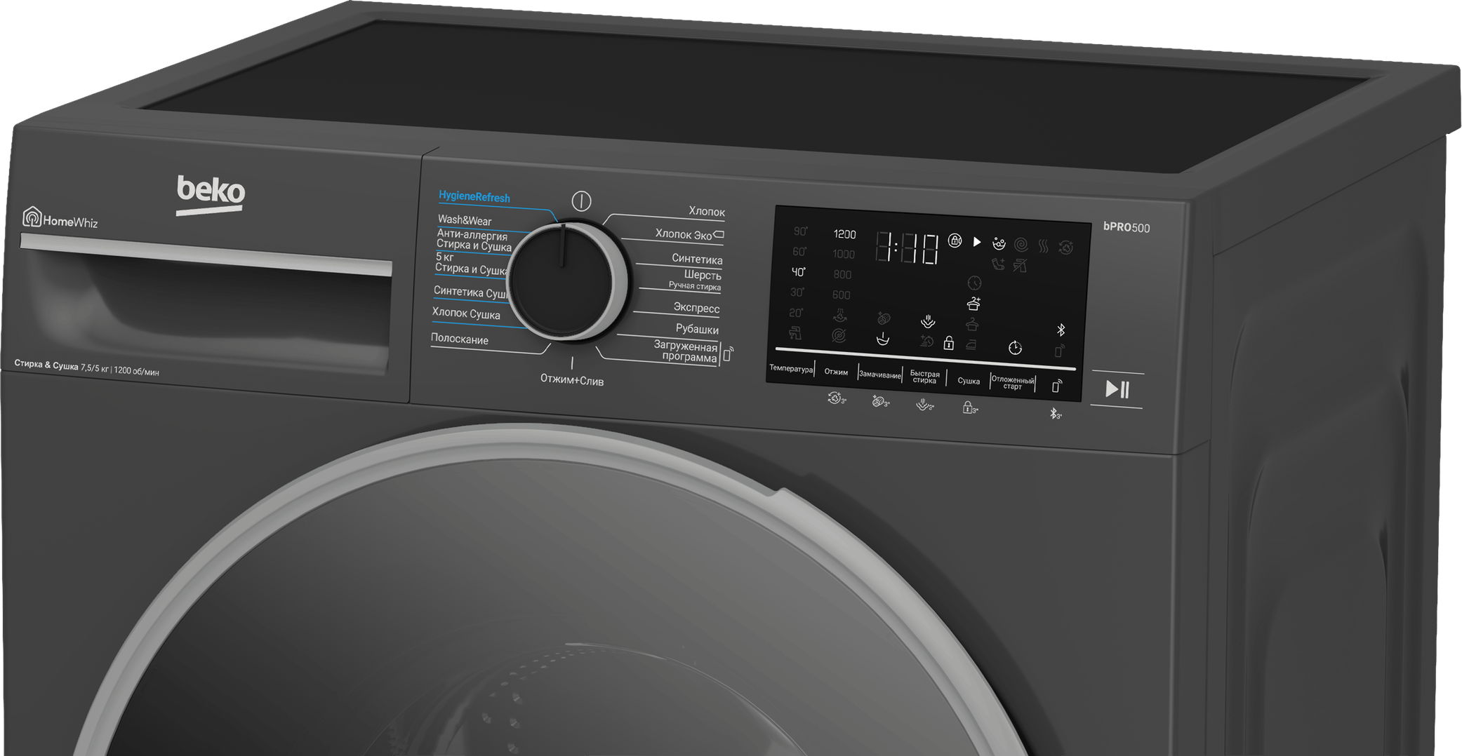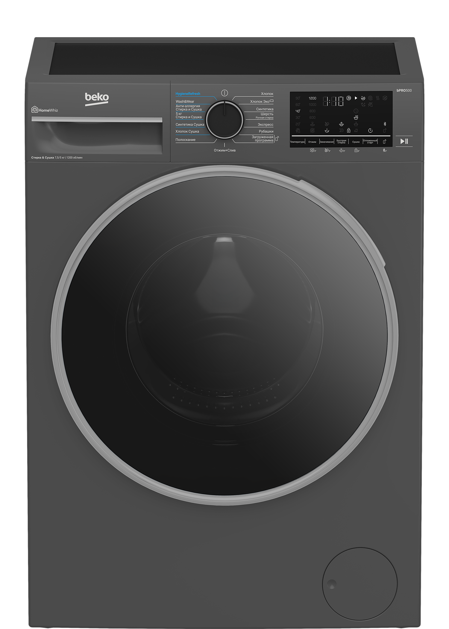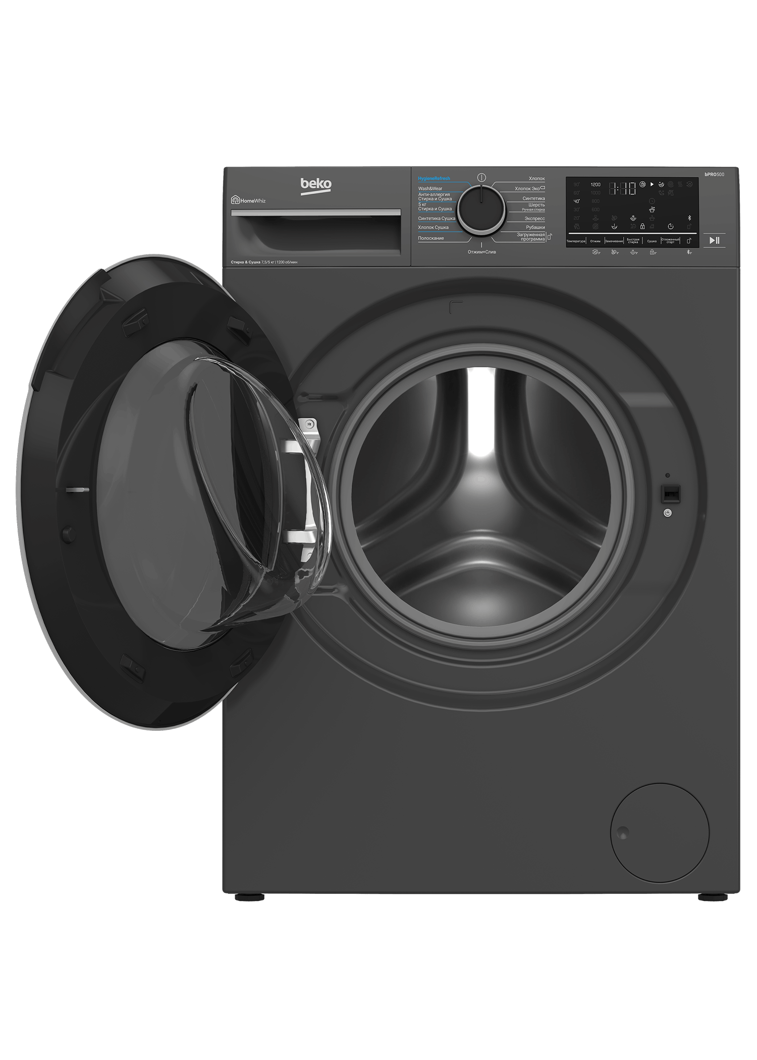 Инверторный мотор обеспечивает тихую и долговечную работу, а функция блокировки от случайного нажатия делает использование безопасным — особенно для семей с детьми. Управлять стирально-сушильной машиной Beko B3DFR57H22A можно дистанционно через мобильное приложение, что позволяет гибко планировать стирку и сушку, а при необходимости — добавлять забытые вещи даже после запуска программы.