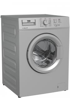 Узкая стиральная машина серебристого цвета с загрузкой барабана до 5 кг и 15 автоматическими программами стирки, включая режимы для пуховиков и шерстяных вещей. Стиральная машина оснащена функцией блокировки кнопок и электронным контролем дисбаланса, который равномерно распределяет белье в барабане и снижает уровень шума и вибрации во время стирки и отжима.