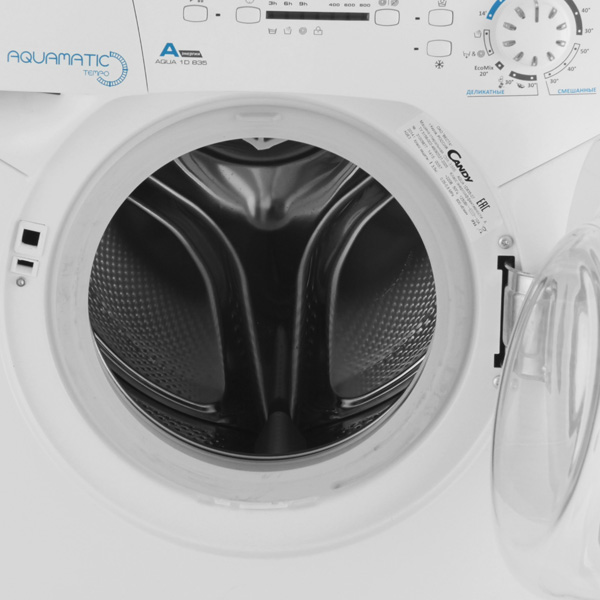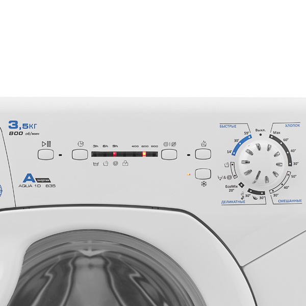 Модель AQUA 1D 835 обладает уникальными характеристиками, так как при небольших габаритах, ее максимальная загрузка составляет 3,5 кг сухих хлопковых тканей.