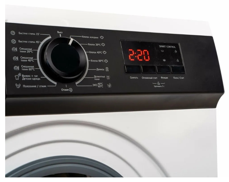 Программы стирки: Быстрая стирка, Стирка деликатных тканей, Стирка детской одежды, Стирка изделий из джинсовой ткани, Полоскание + отжим, Отжим, Стирка изделий из хлопка, Стирка смешанных тканей, Экономичная стирка