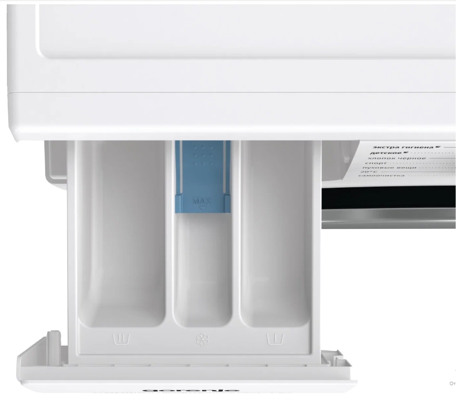 сенсор уровня воды, дозатор стиральных средств с тремя отделениями; холодная стирка (15°C), программа самоочистки; обработка паром SteamTech; защита от перелива