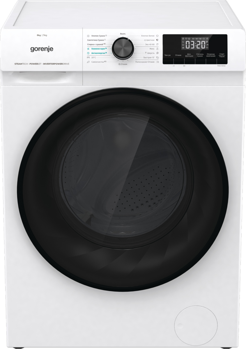 Представленная осенью 2021 года стирально-сушильная машина компании Gorenje — это прибор среднего ценового сегмента с глубиной корпуса 61 см. Для стирки в барабан можно загрузить до 8 кг хлопковых вещей, а для высушивания (сушилка конденсационного типа) — до 5 кг. Модель оснащена инвертором PowerDrive, который сочетает надежность, низкий уровень шума (не более 72 дБ при отжиме на скорости в 1400 об/мин) и экономичность. За цикл без сушки расходуется 42 литра воды (с ней — 79 л), а энергопотреблением в таком сценарии соответствует высокой оценке B (по новой маркировке). С сушилкой расход электрики выше и соответствует классу E. Стиральная машина Gorenje WD 8514S поддерживает 15 программ, включая быструю, экономичную (при температуре воды 20 градусов), гигиеническую (AllergyCare) и сервисную SterilTub (для очистки барабана). Отдельно нужно сказать о наличии паровой функции, которая среди прочего предназначается для освежения одежды без использования моющих средств. К другим особенностям прибора относится практичное управление с дисплеем и сенсорами и опция StopAddGo, позволяющая поставить стирку на паузу, чтобы, например, добавить вещи.
