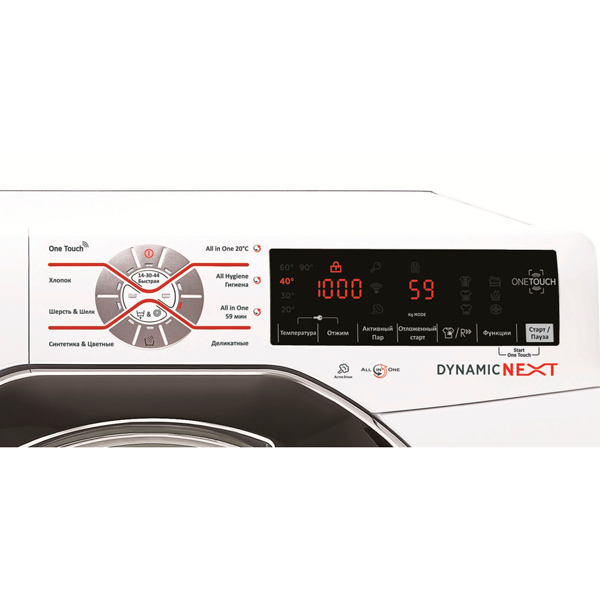 На экран Hoover DXOP437AHC3/2-07 также поступает информация и о массе загруженного белья. Эта «фишка» не даст вам возложить на прибор непосильную задачу и вывести его из строя.