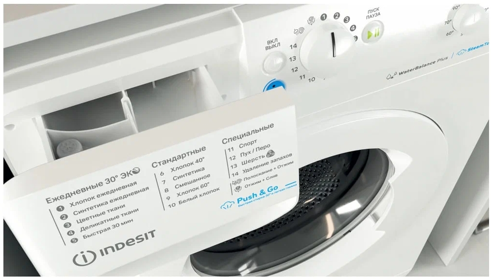 быстрая стирка, отмена отжима, предварительная стирка, предотвращение сминания, стирка деликатных тканей, стирка пуховых вещей, стирка синтетики, стирка хлопка, стирка шерсти, удаление пятен, экономичная программа