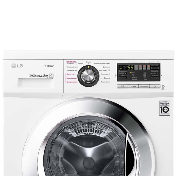 Электронное управление очень удобно. За выбор программ отвечает поворотный регулятор, все прочие настройки вводятся при помощи кнопок и большого дисплея, отображающего все параметры работы устройства. Когда стирка завершится, прозвучит сигнал. При желании его можно отключить. В случае возникновении каких-то неполадок функция SmartDiagnosis позволит определить проблему при помощи смартфона и сразу же передать полученные данные в сервисный центр.