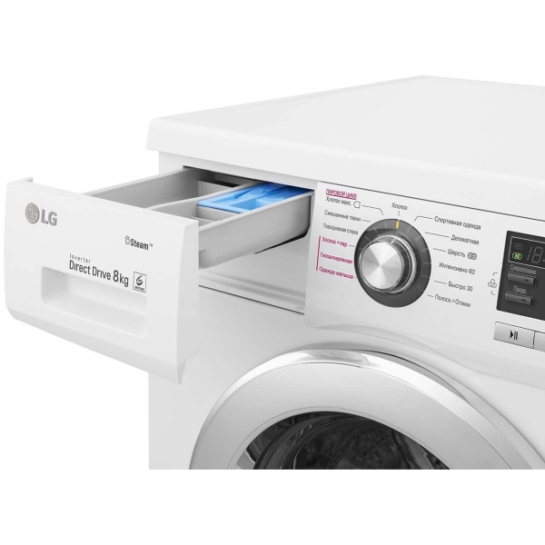 Барабан стиральной машины LG F1296TDS3 вмещает 8 кг белья, что делает её удобным решением для большой семьи. Кроме того, это облегчит уход за «крупногабаритными» вещами: покрывалами, пледами, постельными принадлежностями и банными полотенцами. А широкий люк диаметром 30 см облегчит загрузку и выгрузку.