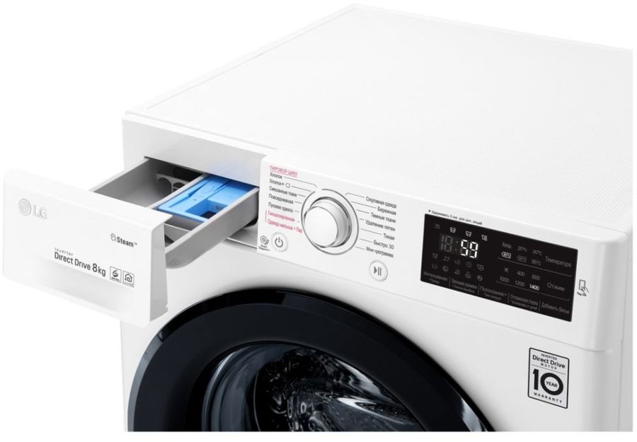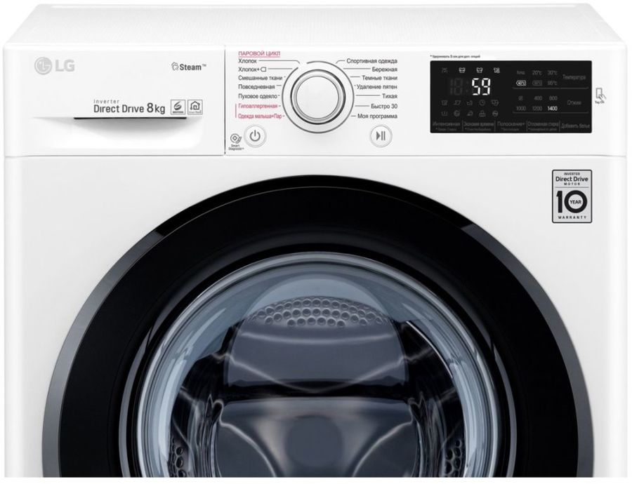 Особенности Функция пара Steam. Автобалансировка. Детектор загрузки. Автоперезапуск. Инверторный мотор с прямым приводом. 6 движений заботы. Мобильная диагностика Smart Diagnosis. Функция Tag On (NFC для смартфонов). Функция очистки барабана.