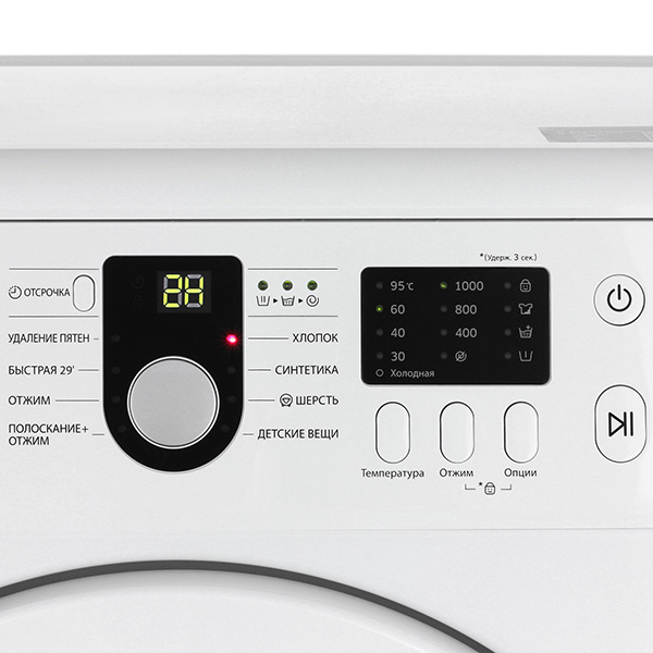 Программы удаление пятен, быстрая стирка, отжим, полоскание+отжим, хлопок, синтетика, шерсть, детские вещи