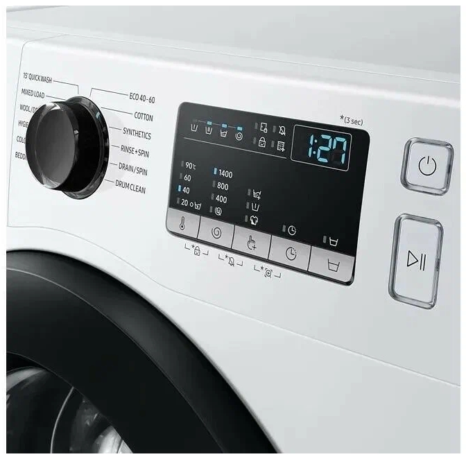 Модель - WW90T4040CE1LE. Габариты : Высота - 85 см, Глубина - 55 см, Ширина - 60 см. Тип загрузки: фронтальная, Максимальная загрузка белья: 9 кг, Максимальная скорость отжима: 1400 об/мин. Установка: отдельно стоящая, Тип управления: поворотный механизм, сенсорное, дисплей, Инверторный двигатель, Количество программ стирки: 21. Программы: быстрая стирка, стирка деликатных тканей, стирка детской одежды, стирка изделий из джинсовой ткани, стирка изделий из синтетики, стирка изделий из хлопка, стирка изделий