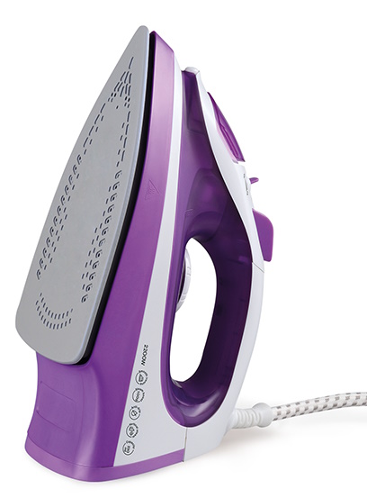 Утюг с мощным паровым ударом, керамическим покрытием для лучшего скольжения подошвы, функцией "спрей" и системой защиты от накипи.