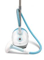 Напольный отпариватель с регулируемой высотой стойки, соплом с широкой подошвой, резервуаром для воды емкостью 1,5 литра и парообразованием до 38 г/мин.