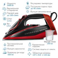 Сухой и влажный режим глажения, Функция самоочистки, Функция вертикального отпаривания, Мелкодисперсное разбрызгивание, Система защиты от накипи, Противокапельная система, Индикация уровня воды, Регулировка температуры, Функция автоотключения