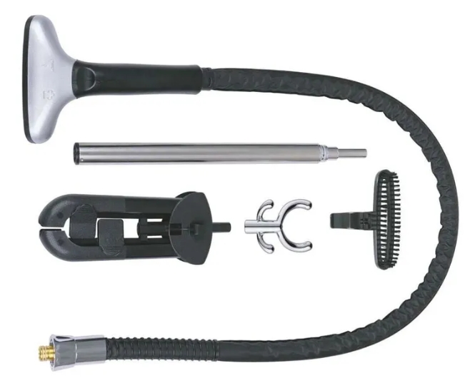 - Держатель утюжка и щетка-зажим для удобства в процессе отпаривания.