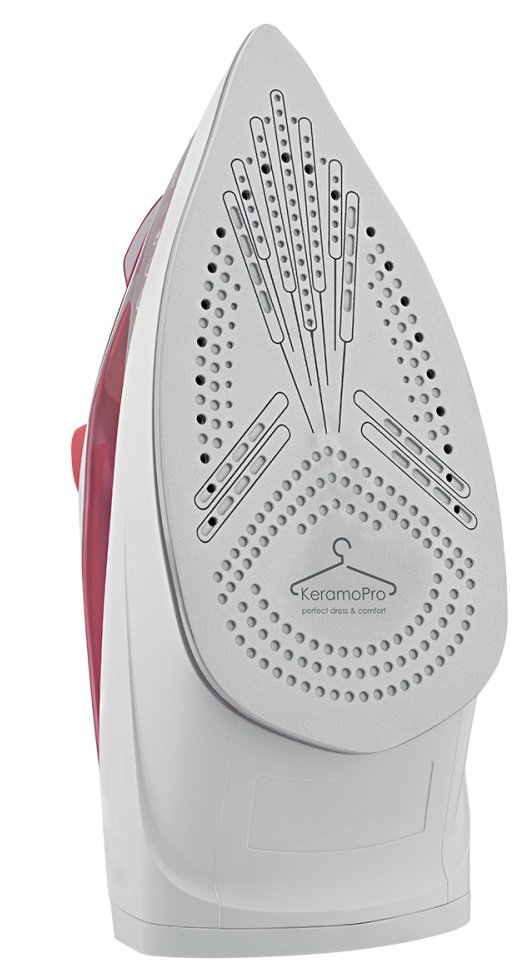 Утюг Scarlett SC-SI30K56 с пластиковым корпусом розового цвета снабжен идеально гладкой подошвой с керамическим покрытием KeramoPro, которая обеспечивает отличное скольжение и бережное отношение ко всем видам тканей.