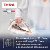 Постоянный пар подается со скоростью 50 г/мин и делает каждое глажение более быстрым и эффективным, а мощность 3000 Вт обеспечивает быстрый нагрев утюга. Подошва Durilium AirGlide Autoclean предлагает лучшее скольжение от Tefal, остается идеально чистой даже спустя время и гарантирует максимальное распределение пара по всей поверхности. Эксклюзивный коллектор облегчает очистку от накипи и поддерживает высокую производительность утюга надолго.