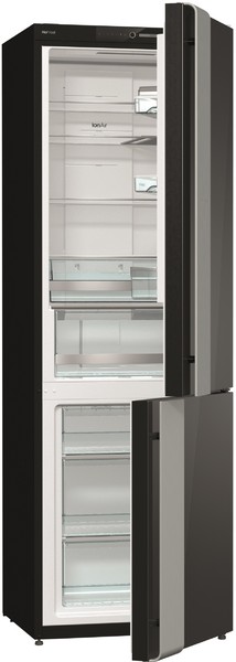 Двухкамерный холодильник Gorenje NRK 612 ORAB в дизайне Ora-Ito — необычная модель, в оформлении которой сочетается черный цвет фронтальной поверхности и анодированный алюминий большой накладной ручки.
