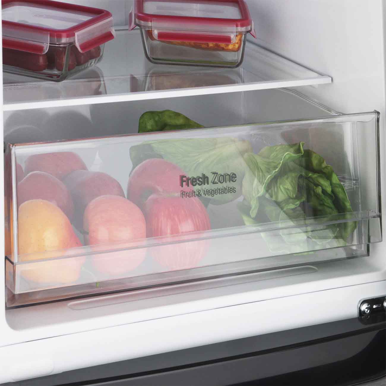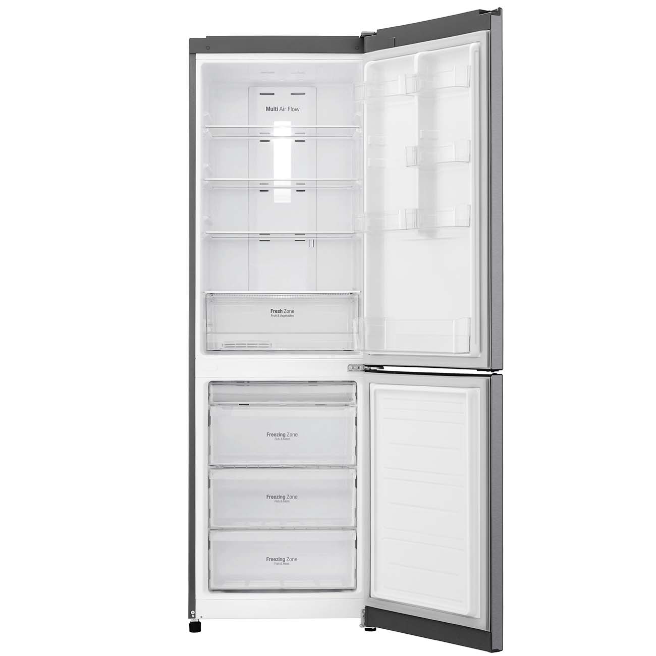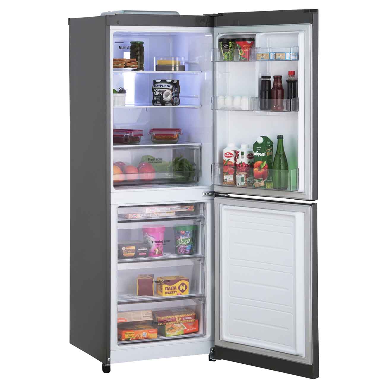 Двухкамерный 2-контурный холодильник компании LG — это прибор с системой автоматического размораживания Total No Frost в двух камерах и удобным внешним сенсорным управлением с функцией защиты от детей. Также модель оснащена фирменным инверторным компрессором, на который распространяется 10-летняя гарантия производителя. Помимо надежности инвертор позитивно сказывается на уровне шума (до 39 дБ) и энергопотреблении (класс A+). Холодильник LG GA-B379SLUL при высоте в 174 см вмещает суммарно до 261 литра, чего должно быть достаточно небольшой семье из 2 – 3 человек. 182-литровое холодильное отделение для распределения продуктов получило три полки, зону свежести и пять дверных корзин. В морозилке на 79 литров находятся три выдвижных ящика. В них можно за сутки заморозить около 9 кг продуктов. К другим полезным функциям модели относится динамическое охлаждение Multi Air Flow, быстрая заморозка, а также индикатор закрытия дверцы. Кроме версии в серебристом цвете в продаже встречается и прибор в белой расцветке.