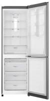 В холодильнике LG GA-B419SLGL предусмотрен индикатор температуры и механизм, сигнализирующий об открытой двери. Две вместительные морозильные камеры объемом в 124 л с четырьмя выдвижными ящиками расположены снизу и автоматически размораживаются по системе No Frost.