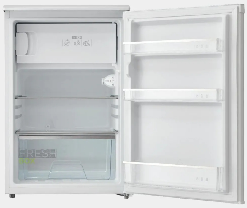 Объем холодильной камеры составляет 97 литров, а морозильной - 16 литров: этого хватит для 1-2 человек. Полки выполнены из ударопрочного стекла и выдержат значительные нагрузки.