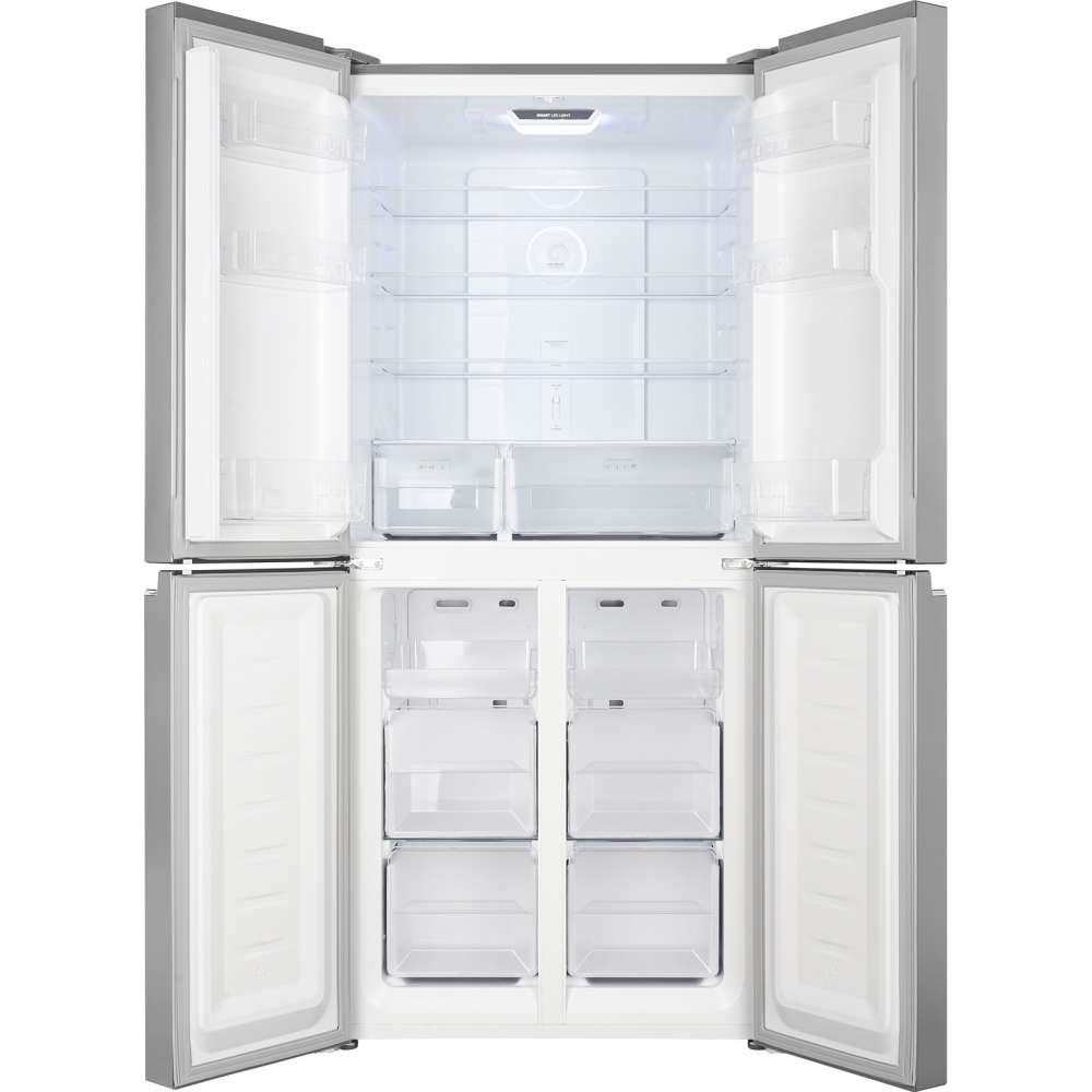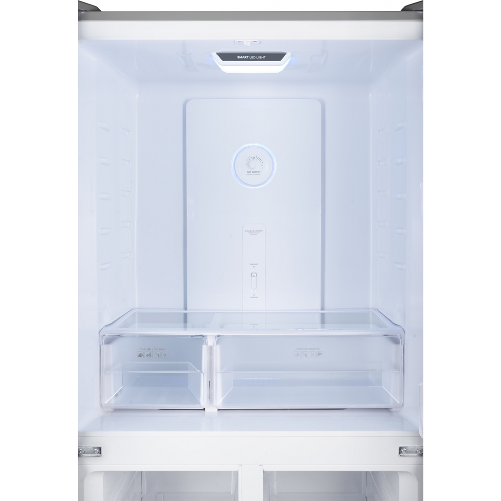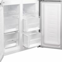 Блок электронного управления модели выполнен с учетом всех современных требований к качественному холодильнику. Стоит отметить, что данное устройство относится к классу энергопотребления А (расход составляет всего порядка 394 кВт/год). Светодиодная система внутренней подсветки обеспечит прекрасную видимость на всём внутреннем объеме камеры. Регулировка системы охлаждения и замораживания возможна как в ручном, так и в автоматическом режиме. Поскольку данная модель использует 1 компрессор, уровень шума во время работы не поднимается выше 43 Дб, что является достаточно скромным показателем для холодильника таких габаритов и производительности.