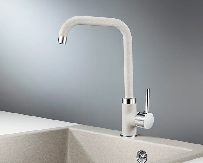 • Благодаря возможности выбрать нужный цвет смеситель превосходно сочетается с кухонными мойками Granula.
